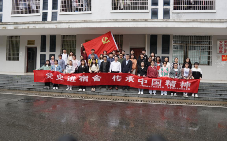 5月20日,电子商务专业全体师生党员佩戴党徽在8栋宿舍楼前集合,在纷纷细雨中点燃了“党史进宿舍,传承中国精神”主题党日活动的热情。国家一流专业建设点负责人、商学院副院长、教工第三党支部书记刘加林表示,深入学生宿舍开展党史故事宣讲活动,旨在将宿舍打造成为党史学习教育的坚实阵地,切实增强党史学习教育的吸引力、感染力和影响力。