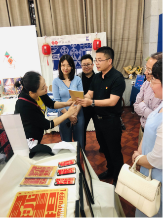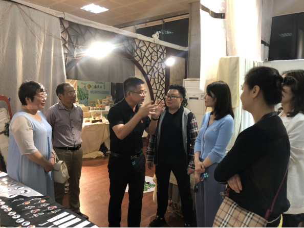 童玲对展厅的作品逐一进行了详细的介绍,彭育晚对现场展示的多套品牌、文创、视频、VR、全息投影等优秀毕业作品产生了极大的兴趣,尤其是对针对油溪桥村设计的几组产品包装和乡村振兴规划赞不绝口。彭育晚高度赞扬了美术与设计学院师生的专业水平和能力,对美术与设计学院产教融合的成果给予了充分肯定,也表达了热切期盼KY官网为油溪桥村实现乡村振兴目标出谋划策的意愿,希望今后与KY官网在品牌和产品包装设计等方面有更广泛的合作。