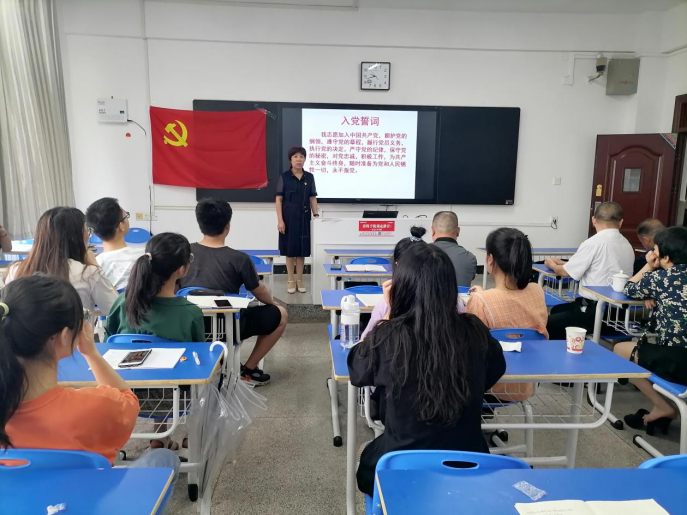 党总支书记李伶作了简短的总结发言,要求大家会后进一步认真学习习主席的讲话,从中吸取不断前进的精神力量,对两位入党的同志表示了祝贺。