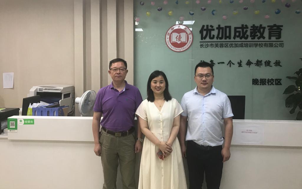 7月3日,文学院党总支书记尹钟宏、党总支副书记毛永宁、就业专干郭建鹏到文学院就业基地学而思网校长沙分公司,及校友企业、实习基地优加成教育培训学校进行走访和考察。学而思网校华南区负责人刘坤、学而思招聘官朱瑶瑶和优加成教育培训学校校长皮春梅亲切接待。