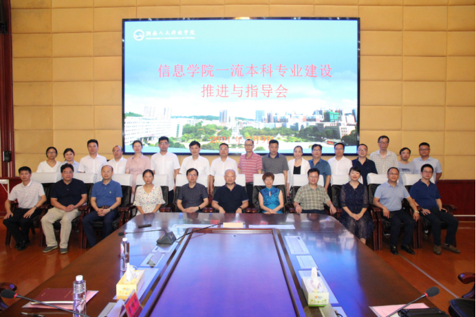 7月9日上午,信息学院在图书馆第一报告厅召开国家/省级一流本科专业建设推进与指导会,校外专家陈志刚教授(中南大学)、邹北骥教授(中南大学)、谭阳红教授(湖南大学)、施晓秋教授(温州大学)、蔡志平教授(国防科技大学)、奎晓燕教授(中南大学)、朱红求教授(中南大学)、方辉总监(江苏省未来网络创新研究院)、聂东平副局长(娄底市工业和信息化局)、匡丽军董事长(娄底市胤安科技有限公司)到会指导,校长刘铁铭、副校长刘建勋出席会议,教务处处长向国红、质量监控与发展规划处处长蒋冰清、教务处副处长刘海力、教师发展中心主任谢四连等学校职能部门领导及学院教师代表参加。