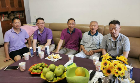 7月22日,正逢大暑,天气炎热,为推进文学院分工会工作,分工会主席彭隆健组织了一次慰问退休老教师的活动。下午四点,文学院党总支书记尹钟宏、院长倪正芳带队,院党政班子一起前往怡河园小区,慰问今年77岁高龄的彭逢澍教授。