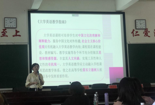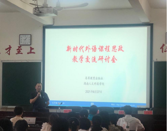 为进一步落实立德树人根本任务,助力外语教师充分挖掘课程思政育人元素,充分发挥课程的育人功能,由高等教育出版社主办、外国语学院承办的新时代外语课程思政教学交流研讨会于8月27日在播馨楼406召开。会议由外国语学院院长胡瑾主持,外国语学院全体专任教师参与研讨。