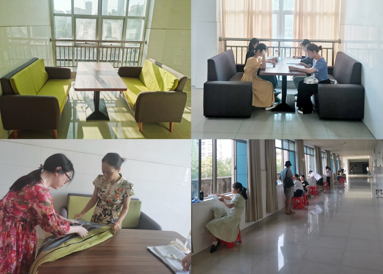 通过深入走访读者,发现KY官网越来越多的同学选择通过考研提升自身的综合素质和竞争力。为进一步支持考研学子学习备考,为读者打造舒适、安静的学习空间,图书馆充分利用有限资源,将库室进行了有效整合。在图书馆领导的带领下,全体馆员积极参与,冒着酷暑,拖地擦窗,搬运桌椅,维修桌椅,不怕累不怕脏,历时一周开辟了301室和608室两间考研自习室,可同时容纳298位读者学习。每间考研自习室提供了存书柜,在校国有资产管理处的帮助下,每间考研自习室新安装了空调,同时,把旧的沙发咖啡桌摆放在每层走廊的两头,并清洗了沙发外套,给人焕然一新的感觉。在各走廊上新摆放了100余条塑料凳子,为喜欢在室外朗读、背诵的同学提供了方便,更好地助力考研学子复习备考。