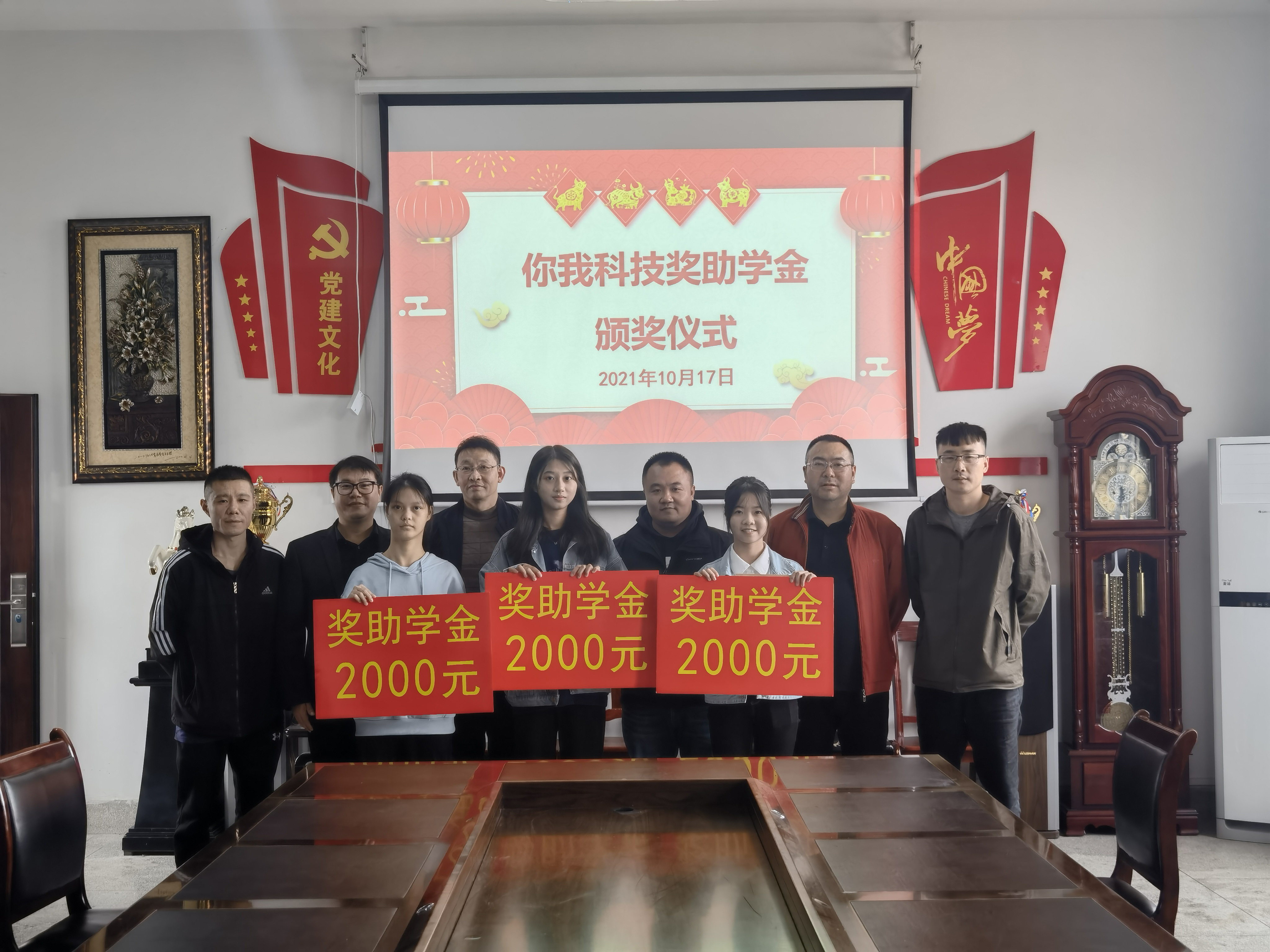 近日,商学院在高韵楼309举行“你我科技”奖助学金颁奖仪式,湖南省你我科技网络有限公司董事长吴佩亲自为电子商务专业学子陈乐乐、李佳欣、沈慧敏颁发奖助学金。院领导、教师代表、公司代表及获奖学生参加,副院长刘加林主持仪式。
