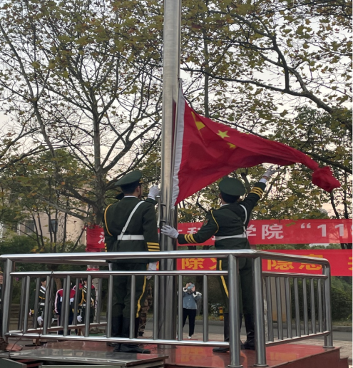 升旗仪式于6时45分正式开始。身姿矫健的旗手们护卫着鲜艳的五星红旗入场,伴着庄严嘹亮的国歌,鲜艳的五星红旗飘扬在操场上空,震撼着在场每个人的爱国之心。