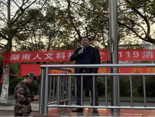 院党总支书记蒋毅提出了两点要求:一是同学们要养成消防意识,将安全第一牢记于心。二是要学习必要的消防知识。蒋书记强调“消除火灾隐患,共建平安校园“是我们共同的目标,全体师生必须共同携手,关注消防,珍爱生命,实现共享平安。