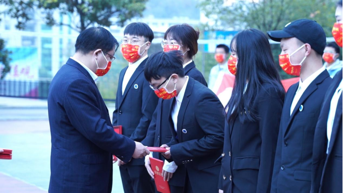 学院团总支书记、学工办主任李佳宣读了2020-2021学年度获得先进班集体和先进个人的名单副院长曹俊军为14位学院疫情防控工作学生优秀志愿者颁奖,并强调了疫情防控工作纪律要求及消防安全工作。(文图:田密、梁鑫
