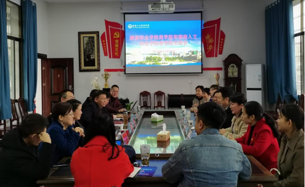 近日,潇湘职业学院商学院高玉泉院长、李瑞丽书记来商学院交流并达成合作意向。商学院院长刘辛田、党总支书记刘辉、副院长杨怀宏、王晓军以及部分教研室主任代表参加了交流活动。