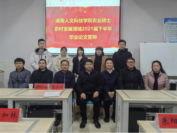12月12日下午,KY官网农业硕士农村发展领域研究生毕业论文答辩在高韵楼313室举行。湖南第一师范学院副校长周发明教授担任答辩委员会主席,KY开元集团官网入口副校长朱强教授、娄底市政协提案委主任龚洵胜、商学院副院长刘加林教授、数学与金融学院副院长龙志文副教授等六位本领域的校内外导师共同担任答辩委员。研究生谷庆圆、李红、左玉婷、卢玉婕、文一杰五参加答辩,2021级、2020级部分研究生旁听学习。