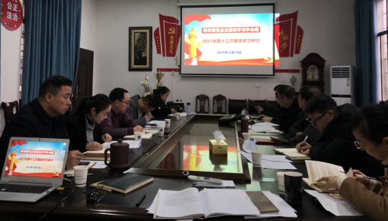 会上,院长刘辛田领学《中央经济工作会议精神》,副书记胡益龙领学了习近平总书记在党外人士座谈会上的重要讲话精神,副院长刘加林领学习近平总书记在全国宗教工作会议上的重要讲话精神,谷小科领学修订后的《中国共产党统一战线工作条例》,韦灵伟、郑清华、刘诗海、黄鹍鹏、刘爱华等则分别领读《中国共产党简史》第七章至第十章中的指定内容。