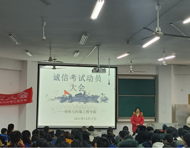 为加强学院学风建设,严肃考风考纪,进一步做好学生安全教育,12月17日,材料与环境工程学院在致远楼119教室举行诚信考试动员大会。副院长胡继林、副书记陈佩君出席,2021级全体学生、2020级、2019级学生代表参加会议。