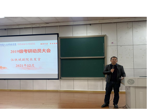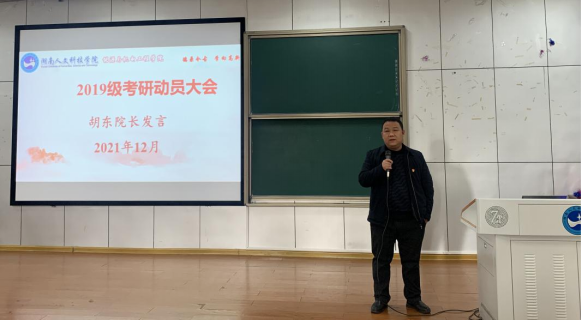 为营造浓郁的考研氛围,为学生考研指明方向,增强学生考研信心,坚定学生考研决心,12月22日下午,能机院在同德楼601召开2019级考研动员大会。院长胡东、副院长伍铁斌、考研班班主任廖湘平博士、辅导员戴建利以及2019级考研生参加会议。会议由伍铁斌主持。