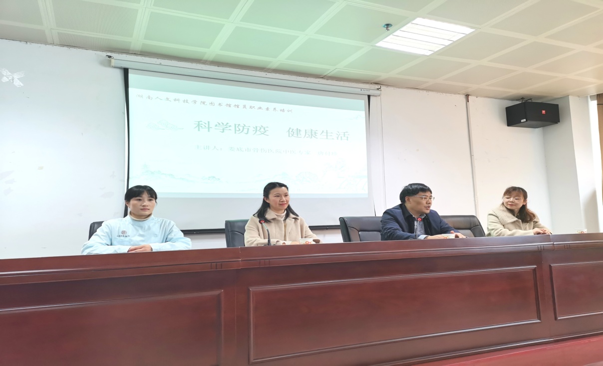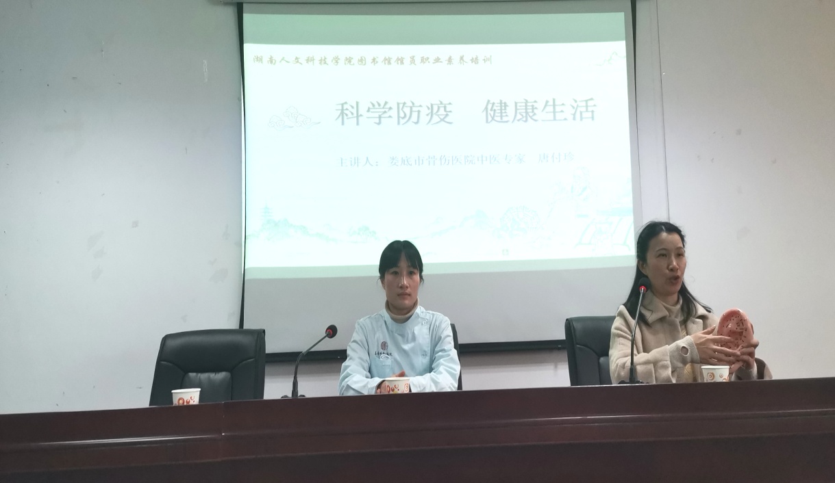 “要积极配合防控,坚持科学健康的生活方式,努力提高心理调节能力。”3月1日下午,为增强全馆职工的防疫安全意识,提高职工的自防自护能力,引导职工科学应对疫情,践行健康生活方式,更好地服务全校师生读者,图书馆特邀请娄底市骨伤医院护理部主任唐付珍为全馆职工进行了科学防疫指导。