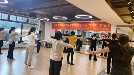 内修心,外修行,美在形体,雅在仪态。经学院分工会争取,在“胡贝儿”形体礼仪女子学堂星海名都校区的大力支持下,信息学院分工会组织女教职工体验了一堂形体礼仪课。