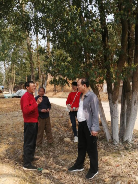 在该村“娄底市松江果树种植专业合作社”的苗木基地,各种苗木屹立在山头,沐浴着煦暖的春光长势正旺,但散布在多个山头的5、6株米径20公分左右价值数万元的椤木石楠零星挂着稀疏的叶子病态恹恹,显得与整片葱郁的苗木格格不入。通过仔细观察树皮、树叶等表象,康林峰判断树苗遭受炭疽和褐斑病的侵害,然后对症下药开出了两套治疗处方,并从防治方法、农药的作用机理、用药时间节点、用药量、次数做了细致入微的说明。合作社负责人彭健光表示,有信心在康教授服务团队的技术支持下做好苗木的病虫害防治,将病入膏肓的椤木石楠治好,焕发出第二次生命。