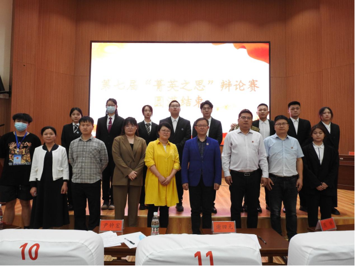 经过评委评判,第七届“菁英之思”的冠军为法学院代表队,亚军为体育学院代表队;美术与设计学院张若昱、材料与环境工程学院尹华祥、法学院谢诗宇、信息学院史芳旗、文学院周美君五名同学获得优秀辩手;商学院芮志祯,体育学院刘超轶两名同学获得最佳辩手奖;法学院谢诗宇同学获得优秀领队奖;网络投票选出最受欢迎的队伍外国语学院代表队。在场领导老师依次为获奖团队和个人颁奖。在现场的热烈掌声中,历时一个多月的的第七届“菁英之思”辩论赛圆满结束。(供稿:校团委宣传部 吴子仪;供图:校团委宣传部 唐敏强 曾亦帆 一审:李林奇;二审:刘佳;三审:陈刚)