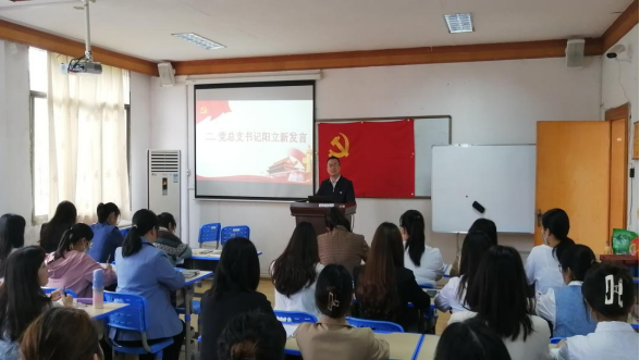 为做好毕业生党员离校前教育,加强毕业生党员的理想信念和党性教育顺利推进党组织关系转移工作,5月23日下午,外国语学院于播馨楼301召开毕业生党员教育大会。学院党总支书记阳立新、党总支副书记罗嗣安、学生一支部书记朱倩、学生二支部书记龙立平、学生三支部书记曹瑜虹以及在校毕业生党员参加了此次大会。会议由罗嗣安主持。