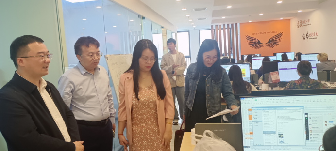 25日下午,在深圳市鑫中孚供应链有限公司长沙分公司负责人王长军陪同下,胡瑾一行实地考察公司综合运营,深入了解公司供应链运营状况及公司职员通过多平台与西北欧客户对接情况。26日上午,胡瑾一行来到湖南乡村发现网络科技有限公司了解人工智能背景下,英文话语与聋哑手势转化机制的建立与数据转化,通过人工智能机器训练师标注外语语料库及手势,与阿里、科大讯飞建立合作为不便利人士提供方便26日下午,在长沙沐苗教育集团,外国语学团队成员沉浸式体验了幼儿感觉统合综合训练与学习能力培养。(一审:曹瑜虹  二审:罗嗣安  三审:阳立新