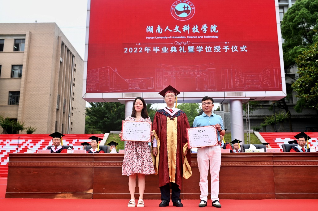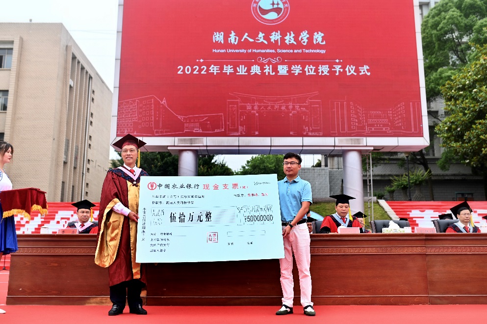 在2022届毕业生离校之际,KY官网校友、湖南中鑫资询信息科技有限公司董事长袁伟峰、夫人赵为受邀回校参加毕业典礼暨学位授予仪式。