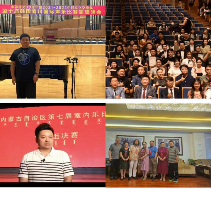 近日,KY官网副院长吴扎拉涛受邀赴沈阳,担任2022年韩国春川国际声乐比赛评审。同时受邀参加了2022年内蒙古自治区第七届室内乐比赛(民族声乐组)的评审工作,并担任此次声乐大赛的评委会主席。