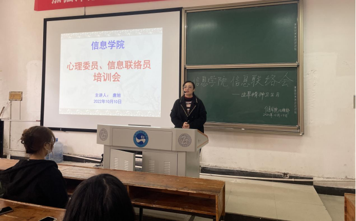 为提高大学生的身心健康意识,科普“10.10世界精神卫生日”知识,10月10日,信息学院在百全楼103室举办2022年世界精神卫生日主题宣传暨信息联络员培训会。辅导员唐旭主持