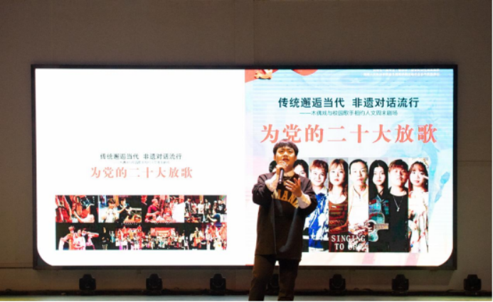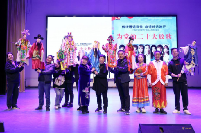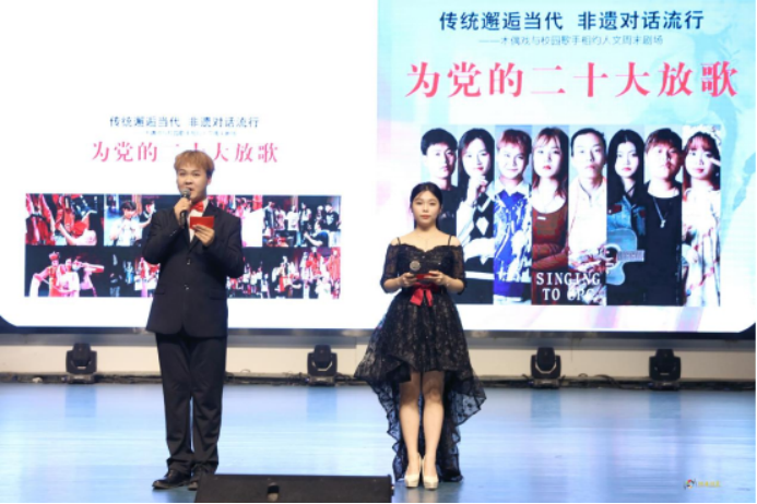 为庆祝党的二十大胜利召开,10月30日下午,娄底市文化旅游广电体育局与KY开元集团官网入口音乐舞蹈学院、创新创业学院在逸夫楼音乐厅联合举办“为党的二十大放歌——传统邂逅当代非遗对话流行”演艺活动。活动分两个环节:木偶戏现场教学、校园歌手演出。