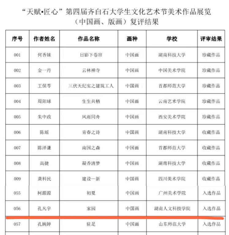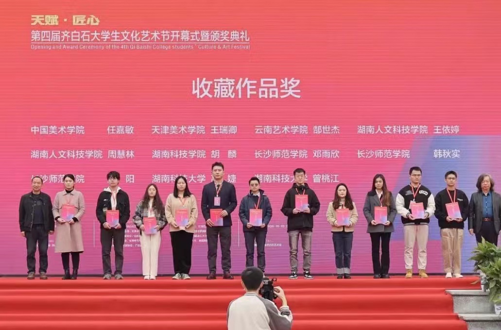 11月19日,以“天赋·匠心”为主题的第四届齐白石大学生文化艺术节美术作品展览在湖南科技大学开幕,省政协副主席张大方出席并宣布开幕。齐白石大学生文化艺术节是湖南省美术家协会和湖南科技大学联合举办的一项全国性大学生文化艺术活动。自2016年创办以来,分别以“国风·意境”“大雅·真趣”和“心颂·至美”为主题举办了三届美术作品展览。