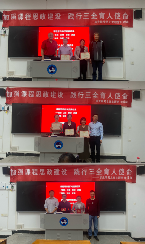 4月18日下午,农生院党总支在致远楼417室开展“加强课程思政建设,践行三全育人使命”主题党日活动暨课程思政及信息化教学竞赛。活动邀请到校级教学督导李铭华教授、胡云生教授及刘显军副教授、曾智博士、马银花博士担任评委。农生院(所)党总支书记胡少平、院(所)长陈勇、教工党员、专任教师等60多人参会,农生院(所)副院长孟桂元主持。