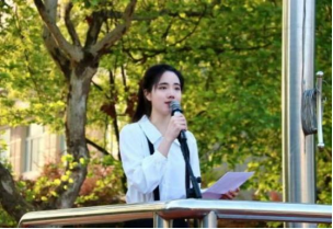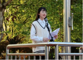 升旗礼毕,2022级英语二班李佩芬同学以“阅读”为主题进行国旗下的演讲,她呼吁同学们要多读书,读好书,养成阅读习惯。同时,她表示可以让阅读与专业结合,让青春在书香中绽放。随后,2019级英语四班学生代表何琪进行发言,讲述了自己考研的心路历程以及学习方法,她强调考研是“马拉松”,而非“百米冲刺”,鼓励学弟学妹们要保持良好心态,坚定理想目标,不断提升自身能力。