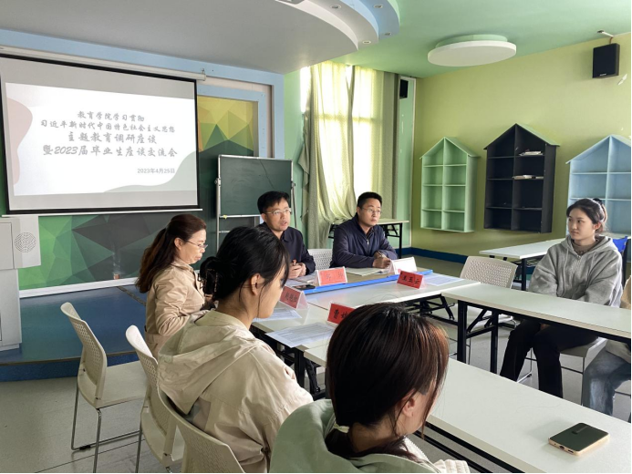 4月25日下午,教育学院组织召开了学习贯彻习近平新时代中国特色社会主义思想主题教育调研座谈暨2023届毕业生交流会。会议按照专业分组进行,党总支书记邹坤、院长刘超良、副书记田密分别主持分组座谈交流。副院长曹俊军、刘黎明,教研室主任,毕业班班主任,辅导员,在校毕业生代表100余人参加。
