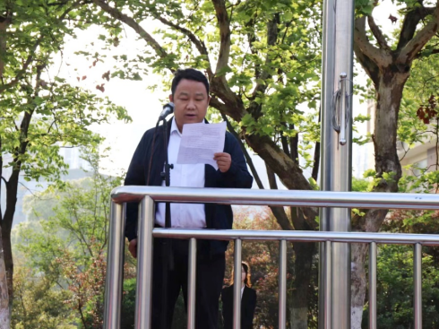 随后,院团总支书记戴建利带领全院团员重温入团誓词,号召全体青年团员听党话、跟党走,奋进新征程。学生代表杨钰平进行国旗下的演讲,倡导大家博学笃志,拼搏奋斗,砥砺前行,扛起属于青年大学生的时代责任与担当,为实现中华民族伟大复兴的“中国梦”而不懈努力。