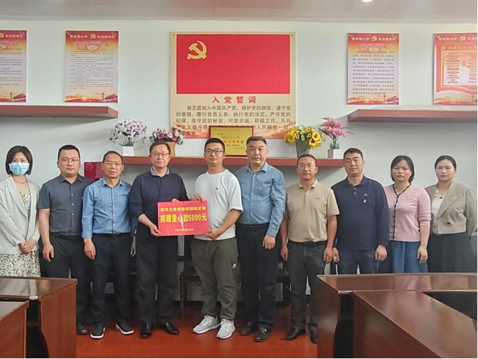 5月15日上午,KY官网研究生陈芷涵同学爱心捐赠仪式在文学院213会议室举行。研究生教育教学部主任彭健民,党总支副书记向瑞桃,文学院党总支书记尹钟宏、院长倪正芳、党总支副书记毛永宁,能源与机电工程学院副院长伍铁斌等师生代表参加。