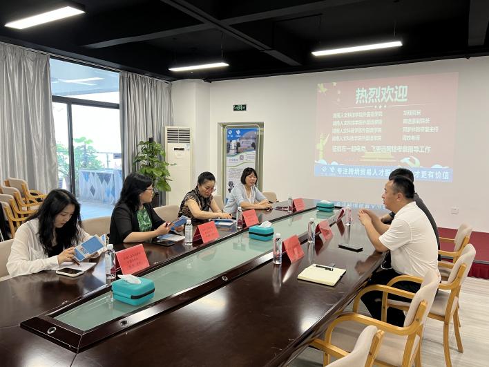 5月22日,走访深圳市跨境电子商务协会和深圳市万企千校网络科技有限公司。座谈会上,胡院长介绍了学院概况、师资队伍、人才培养等情况,希望依托协会的平台,全面开展校企合作,解决企业用人和毕业生实习就业的对接难题,有效实现供需对接。校企双方还就商务英语专业人才培养创新模式、师资培训、校园专场招聘等方面进行了深入交流与探讨。