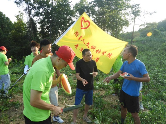 调研中,曾国华从泥土、光照、水分等方面向志愿者们介绍了西瓜种植所需条件。他指导志愿者们下田摘瓜,为志愿者开瓜讲解,分析鉴别瓜成熟与否。最后,曾国华分享自己种瓜、卖瓜经验,为志愿者们在田间地头上了一堂生动的农业实践课。