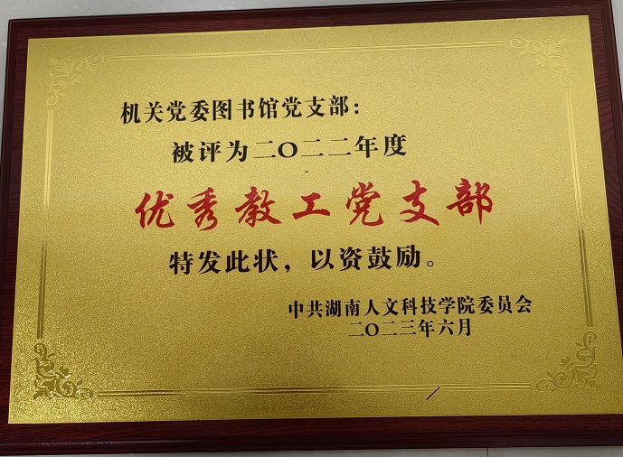 读者的需要就是我们的责任,图书馆党支部不断推进服务型党支部建设,2023年被评为学校优秀教工党支部,胡志刚被评为校优秀共产党员。所得荣誉既是对图书馆党建工作的肯定,更是对图书馆全体职工的鞭策。