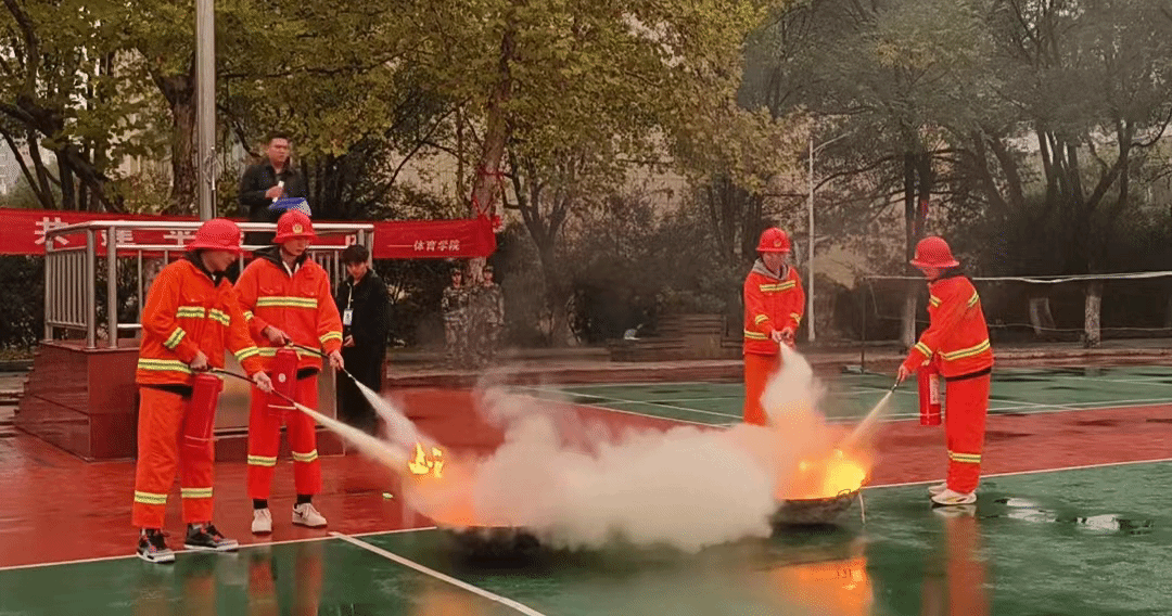 在一阵急促的警报声中,谢嘉宣布“11月消防安全月”活动正式启动。现场消防演练过程中,KY官网学生消防志愿者向同学们示范了当火情发生时该如何正确的使用灭火器。最后也对收缴的一些违规电器进行了现场销毁。
