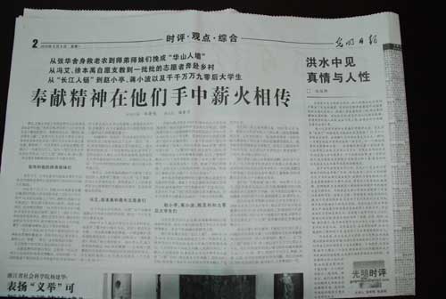 最近,支教女孩赵小亭情系贵州山区的事迹在社会中引起了热烈反响,并引发了人们对九零后这个群体的思考。希腊有句名言,“模范比教训更有力量”。纵观历史,无论是六零后大学生张华舍身救老农,还是八零后大学生徐本禹自愿支教,都奏响了一代优秀青年人的生命赞歌,并感召了一代甚至几代人。如今,九零后优秀大学生层出不穷,从“长江人链”到赵小亭、蒋小波,一种宝贵的奉献精神在他们手中薪火相传。