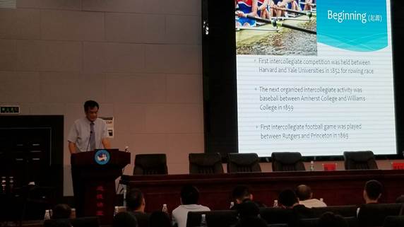 6月1日上午,美国特拉华州州立大学终身正教授、美国体育健康联盟研究院院士陈礼博士应邀来KY官网体育学院做题为《美国大学运动队的发展、运作及管理》的学术报告,会议由体育学院院长刘玉江教授主持,体育学院的教师、各运动队教练及运动员以及2017级运动训练专业学生共同参加了报告会。