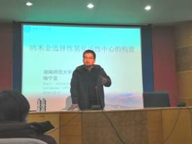 12月4日,湖南师范大学博士生导师、湖南省大学生课外化学化工类创新作品竞赛发起人之一喻宁亚教授应邀在KY官网养根楼报告厅举行催化材料-纳米金选择性氧化活性中心的构建和化学学科竞赛讲座,本场讲座由化学教研室主任彭伟才博士主持,材环学院院长杨道武、副书记李星奇、副院长谭峰亮、吴超富博士、宁旭涛博士等领导和老师参加。