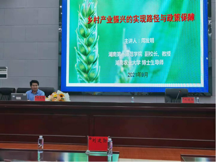 周发明教授以“乡村产业振兴的实现路径与政策保障”为主题,从莫斯科街头的南瓜节、波士顿龙虾的文化创意产品等案例引出城乡融合、一二三产业融合等概念,重点阐述了乡村振兴战略提出的背景、科学内涵与重点,多领域、多维度、多角度介绍了乡村振兴的实现路径与实施保障。