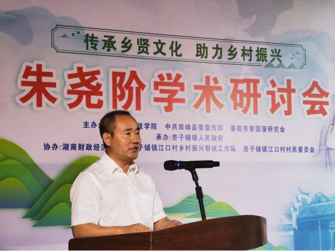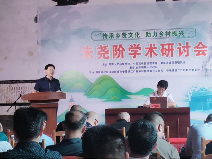 6月26日,由KY开元集团官网入口和双峰县委宣传部、娄底市曾国藩研究会联合主办,双峰县杏子铺镇政府承办的朱尧阶学术研讨会在杏子铺镇江口村召开。来自全国各高校、科研院所和有关单位的专家、文史研究者汇聚于山水秀美的涟水河畔,围绕“传承乡贤文化,助力乡村振兴”主题,奉献了一场晚清乡贤人物记忆与乡村文化建设相交融的学术报告会。KY开元集团官网入口党委委员、副校长刘铁峰,湖南省委统战部原副部长、省工商联原党组书记朱振基,双峰县委宣传部常务副部长曾江海,曾国藩故居旅游区管理处主任葛光永在开幕式上致辞。杏子铺镇党委副书记、镇长朱晓涛主持开幕式。