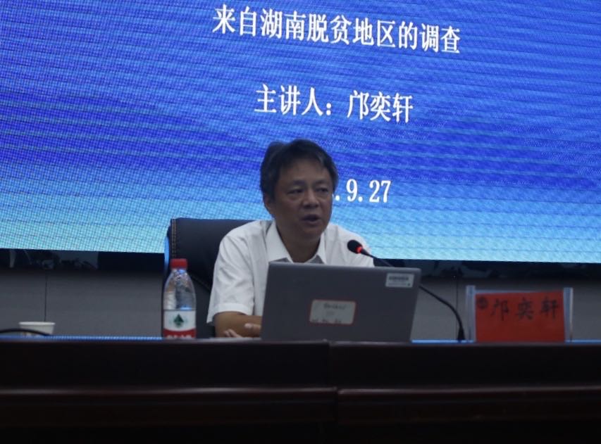 9月27日,湖南省社会科学院农村发展研究所副所长、研究员邝奕轩博士以“从消除贫困到共同富裕:困难的终结”为题,在图书馆二会议室为研究生授课。讲座由研究生教育教学部副主任周丽华主持,全体研究生参加。