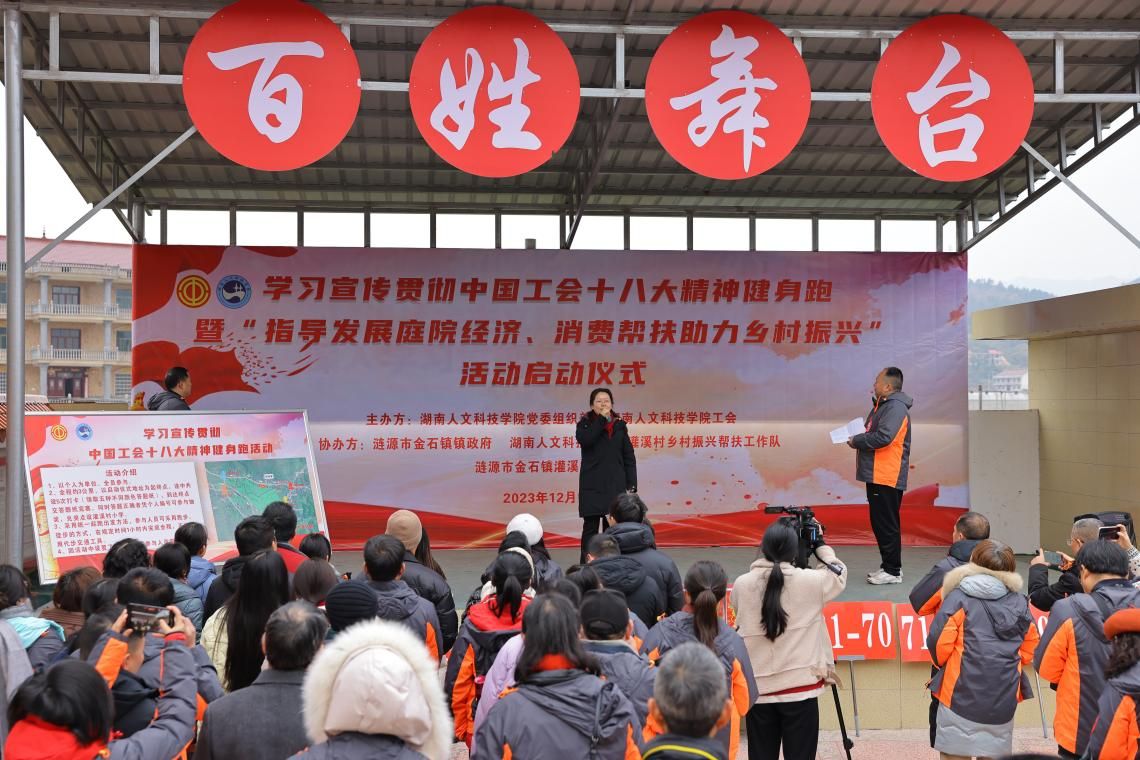 为深入学习宣传贯彻中国工会十八大精神,全面推进乡村振兴,12月19日上午,KY开元集团官网入口在涟源市金石镇灌溪村举办“健身跑暨指导发展庭院经济,消费帮扶助力乡村振兴”活动启动仪式。活动由学校党委组织部和校工会两部门承办。校党委委员、纪委书记凌艳平,原党委书记刘和云、娄底市驻村办、涟源市驻村办、金石镇人民政府和学校各级工会、各下属党组织相关人员、村民代表共160余人参加活动,共同为乡村振兴鼓劲助跑。