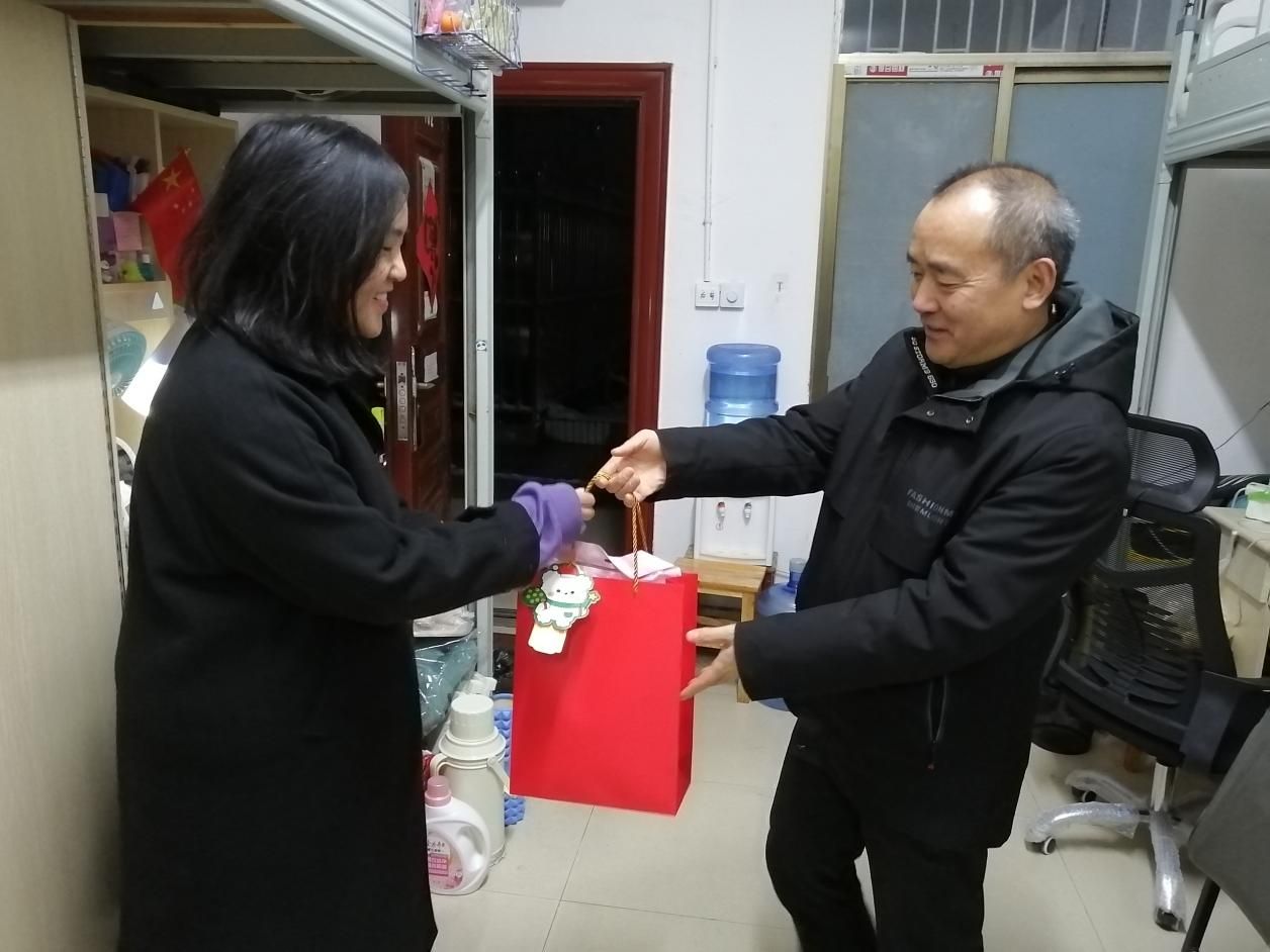 刘铁峰一行与同学们亲切交谈,详细了解同学们的学习、实习和生活情况,嘱咐他们加强安全防范意识,注意用电和消防安全,返家途中注意人身、财产和交通安全,并为同学们送上御寒小礼物。