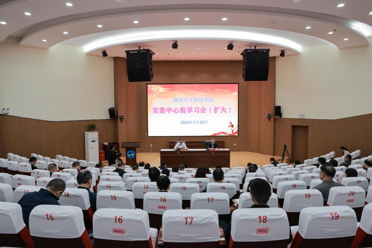 3月25日上午,学校在匠成楼报告厅召开党委中心组学习会(扩大),传达学习习近平总书记近期考察湖南重要讲话精神和历次关于湖南工作的重要讲话和指示批示精神。全体在家校领导出席,中层正职(含主持工作副职)参加。党委书记刘铁铭主持并讲话。