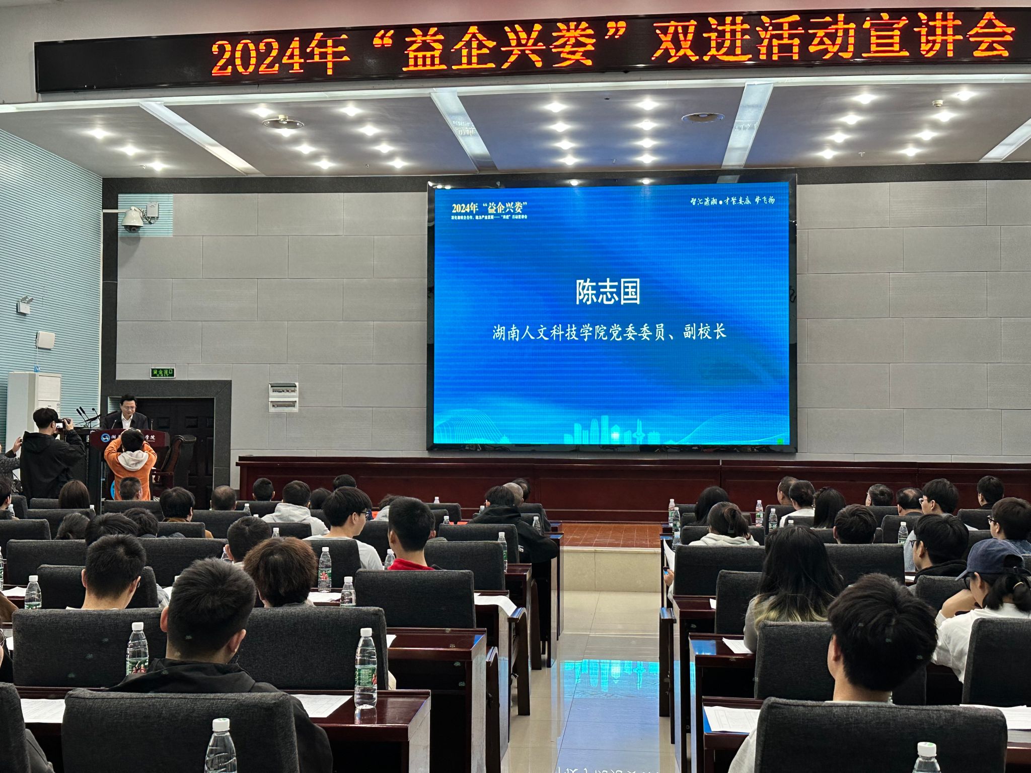 3月28日上午,娄底市2024年“益企兴娄”深化政校企合作,助力产业发展“双进”活动宣讲会在学校图书馆二会议室举办。活动由娄底市委组织部指导,KY官网与市工信局、市人社局共同主办,娄底市创新创业学院、市企业联合会、市企业家协会联合承办。党委委员、副校长陈志国,市企业联合会、企业家协会会长余明庭,市工信局,市人社局相关领导出席,学校100余名2024届毕业生参加。