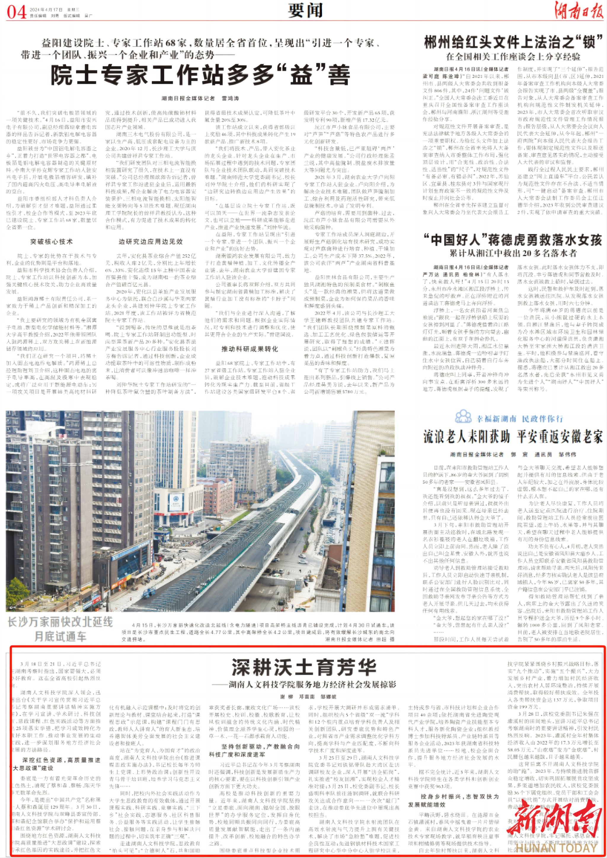 【编者按】习近平总书记考察湖南重要讲话精神催人奋进,KY官网迅速行动,学习传达贯彻落实讲话精神。2024年4月17日《湖南日报》第4版(要闻)刊发KY官网在习近平总书记考察湖南重要讲话精神指引下服务地方经济社会的成果报道,全文如下。