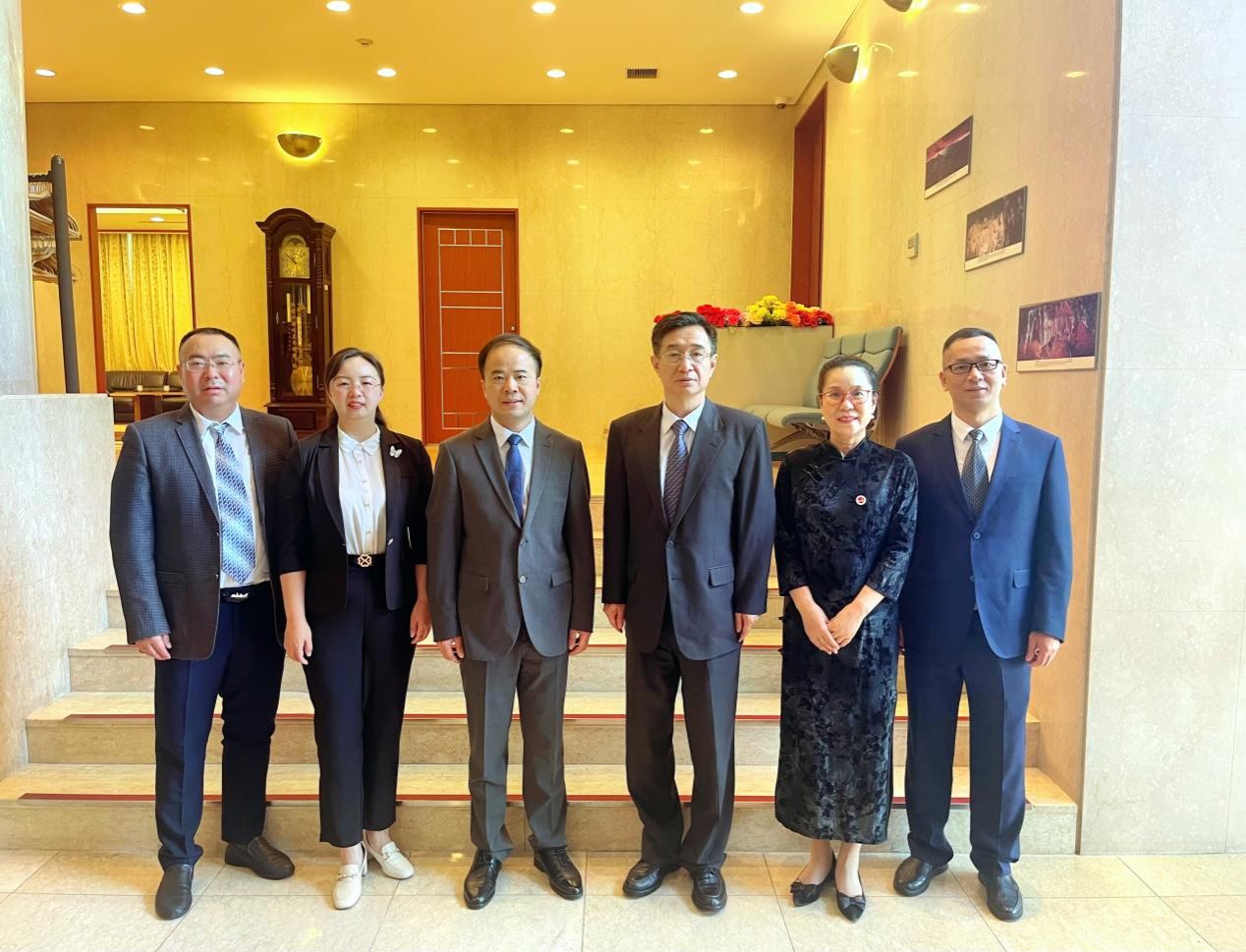 在中国驻日本大使馆教育处,杜柯伟公参对KY官网的到访表示欢迎,向到访团组成员介绍了日本高等教育的基本情况。盛明科向教育处介绍了学校的办学和国际合作交流的基本情况,并希望今后大使馆教育处在KY官网与日方高校合作方面给予更多的指导与支持。双方还就与日方高校开展高层次国际化人才培养创新实践项目、推进高质量国际人文交流合作、中外高水平大学生交流计划进行了深入的探讨与交流。