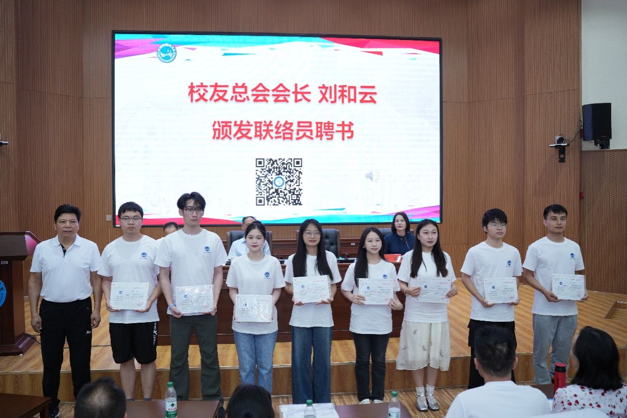 会上举行了2024届毕业生“我和我的母校”主题征文比赛颁奖仪式和联络员聘任仪式。与会领导嘉宾为获奖选手、单位颁发荣誉证书。刘和云为新一届校友工作联络员颁发聘书。